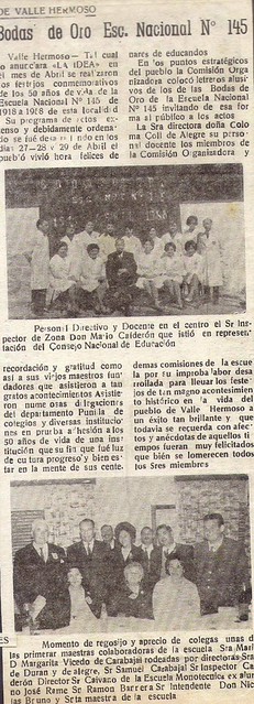 Nota periodistica sobre las Bodas de oro de la Escuela Nacional n° 145.